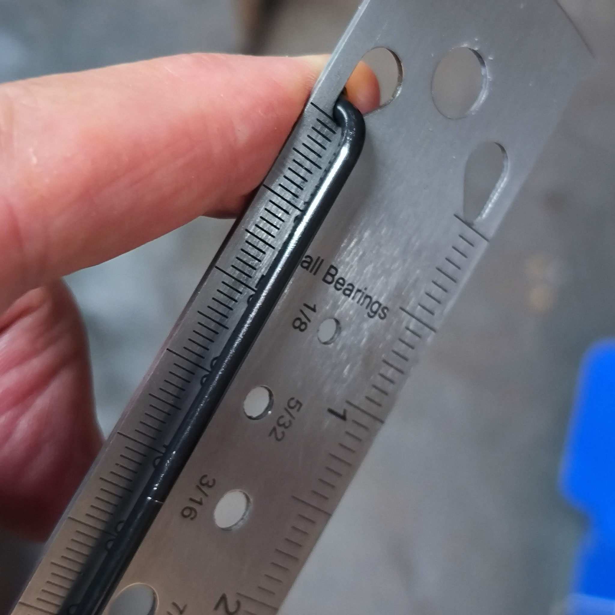 Measuring a J bend spoke on a spoke ruler